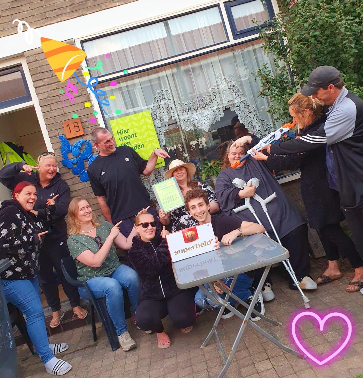 “We hebben heel goed contact in onze straat. We wonen in een soort volksbuurtje waar iedereen als het lekker weer is voor de deur zit. Toen ik de award thuisgestuurd kreeg voor Annebel heb ik al die buren een appje gestuurd en gevraagd om op donderdag half acht naar de voortuin van Annebel te komen. Iedereen was gelijk enthousaist en Annebel had niks door, haar huis is sowieso de plek waar we vaak samenkomen.”, vertelt Syvie.